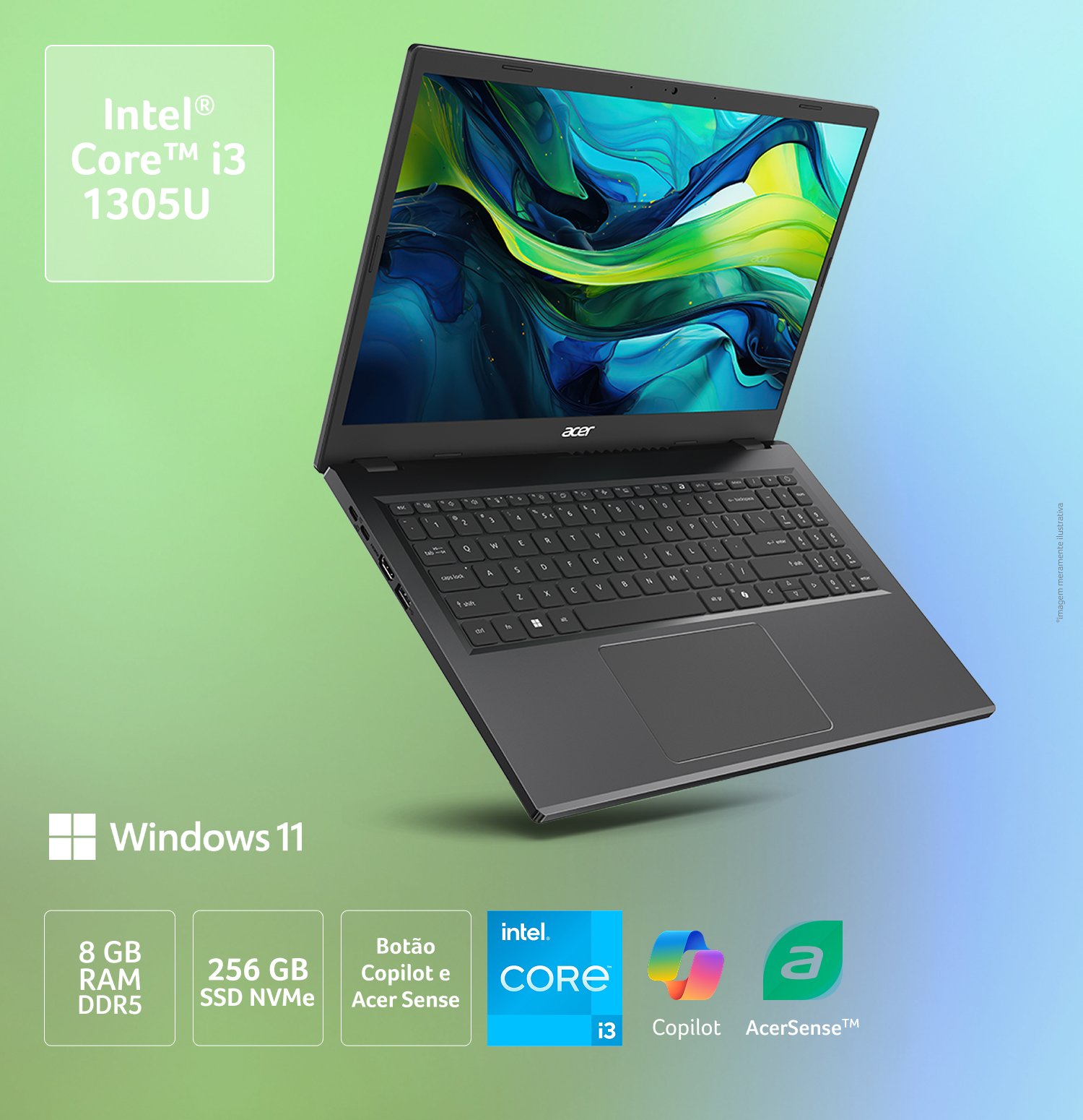 Notebook Acer AG15-51P-39MU Intel Core I3 1305U 8GB DDR5 SSD 256GB 15,3 Wuxga IPS Windows 11 Home