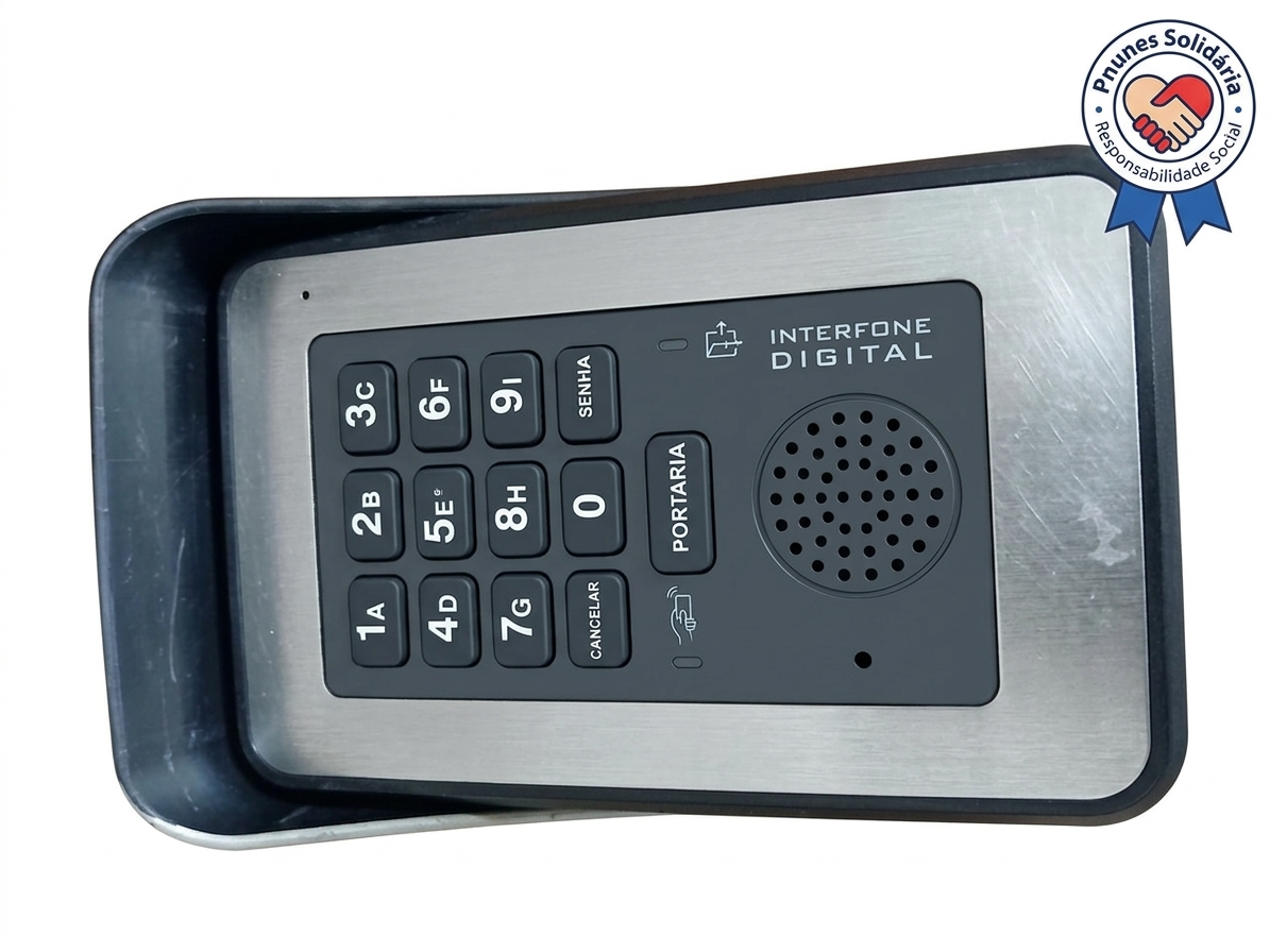 Tecnologia para Segurança com Propósito Social! Este interfone digital foi doado ao projeto Pnunes Solidária. Passou por um processo rigoroso de higienização e revisão técnica na Pnunes Soluções, estando pronto para garantir a comunicação e segurança da sua portaria.